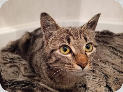 Scheue Katzen versuchen wir an Menschen und Wohnung zu gewöhnen, damit sie vermittelbar sind.